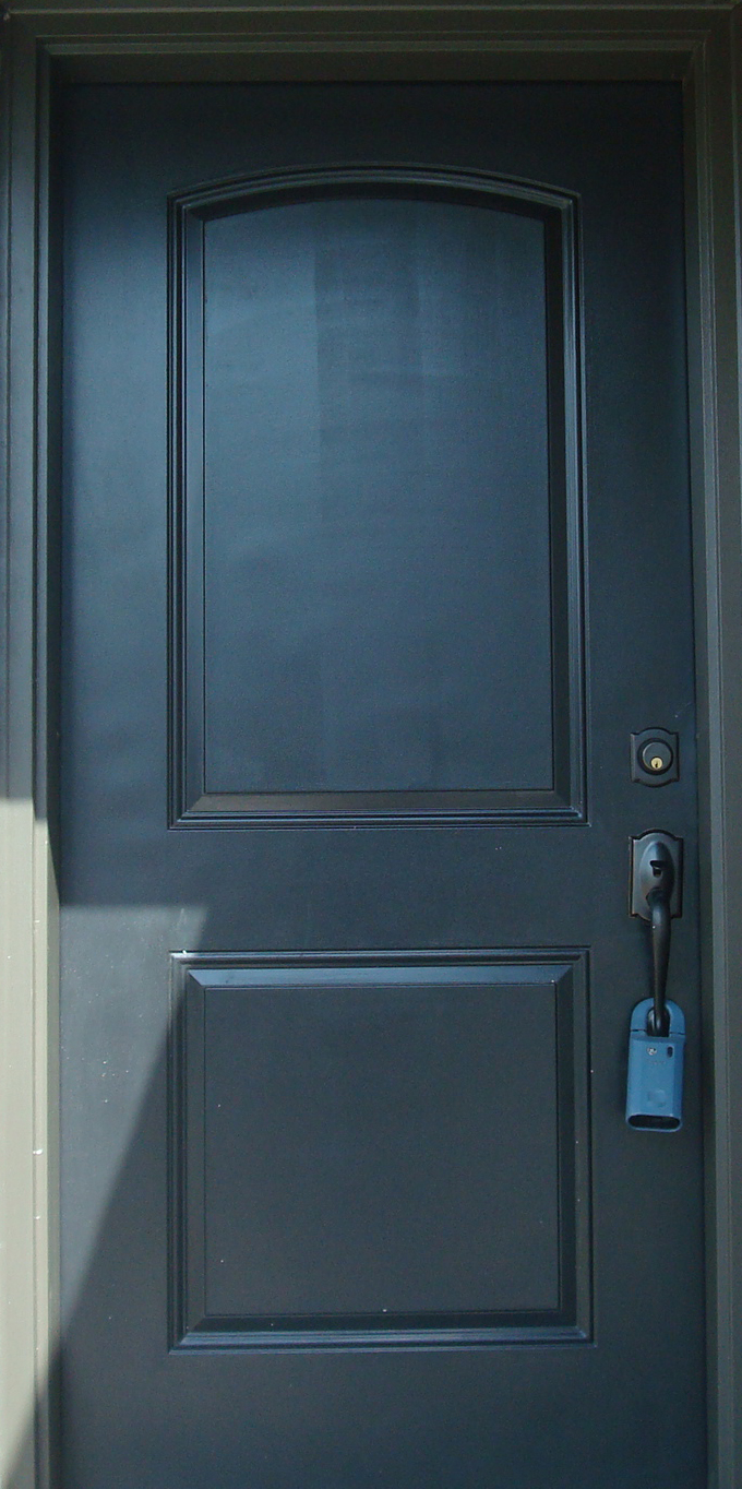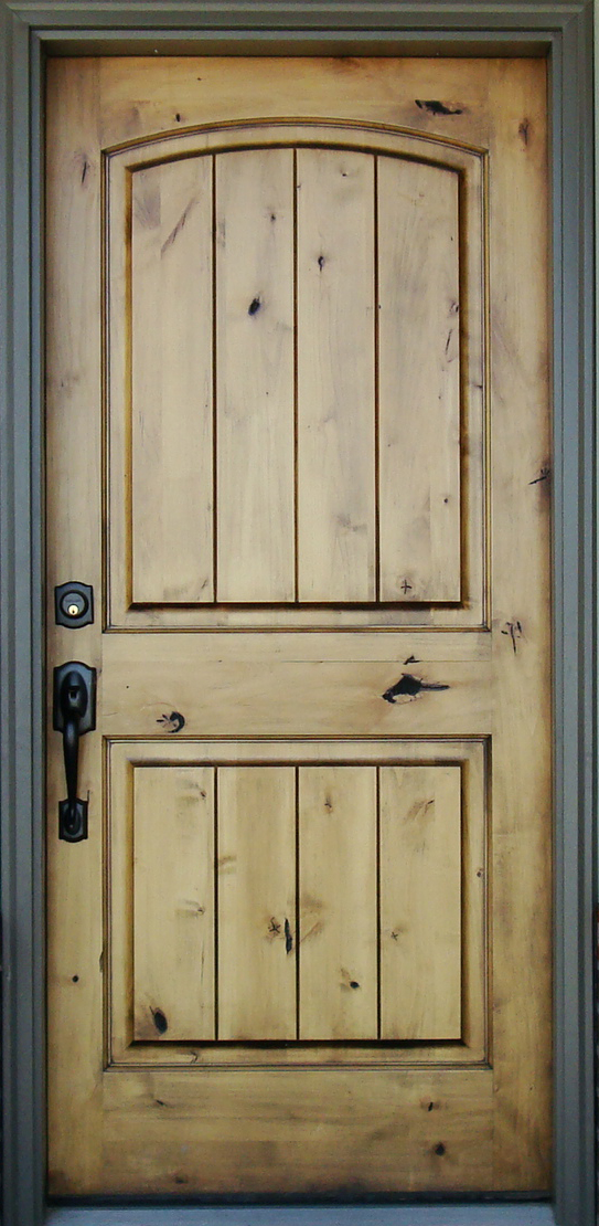 Our Standard Doors are below. Each door can be stained or painted any color. Please check your bid which should specify if you have a Steel or Knotty Alder Door